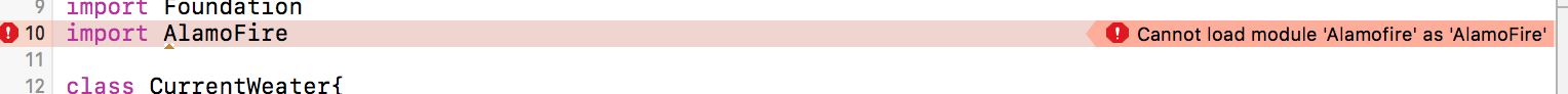 但是当我打开.xcworkspace,创建一个新的快速类并尝试导入Alamofire时,我得到了以下错误: