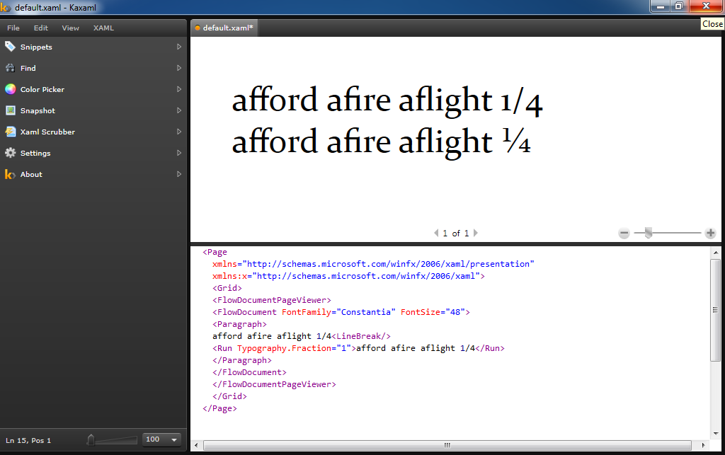 最后,如果我以类似于kaxaml的方式输入与上面的第一个测试用例相同的测试用例:
