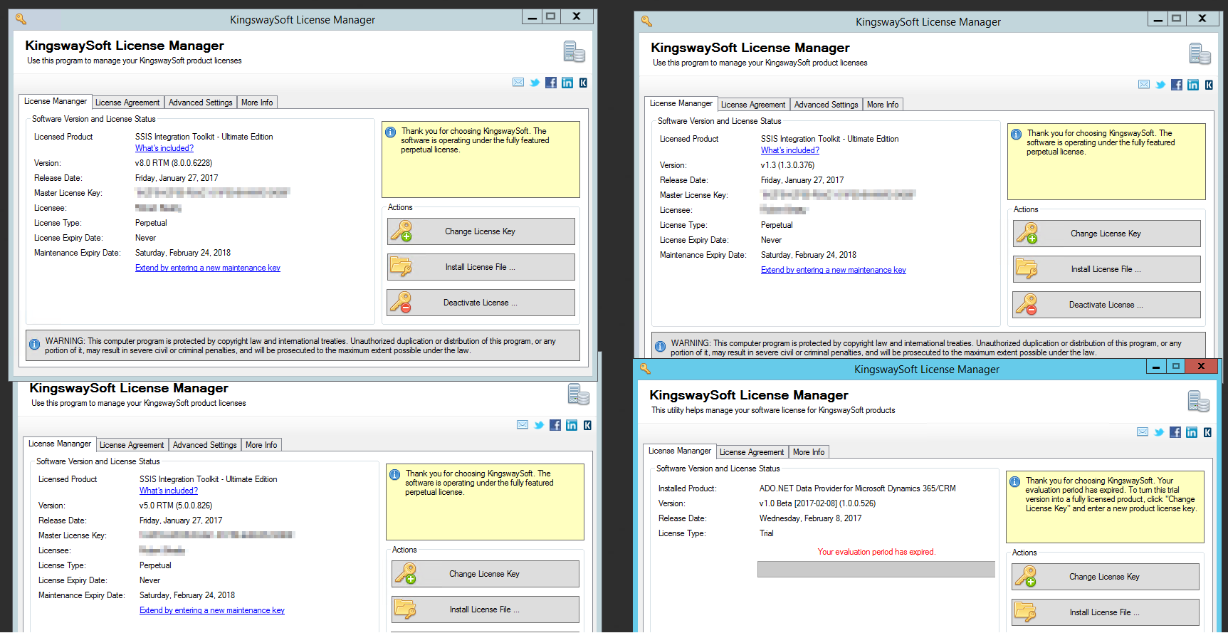 我检查了服务器上的许可证,注意到虽然我有KingswaySoft的终极版,但其中一个许可证管理器没有许可证,也不接受我的许可密钥。也许这是许可证问题?