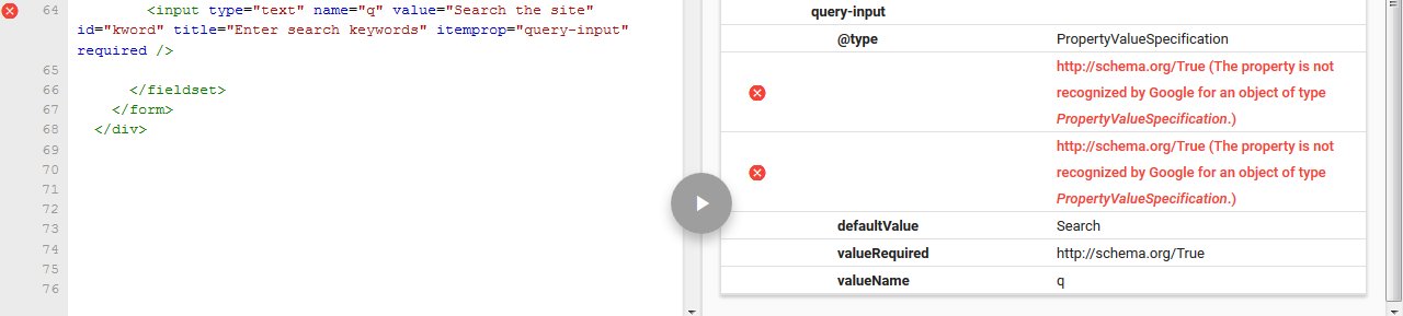 <input type="text" name="q" placeholder="Search the site" id="keyword" title="Enter search keywords" itemprop="query-input" required />https://stackoverflow.com/questions/44694581
