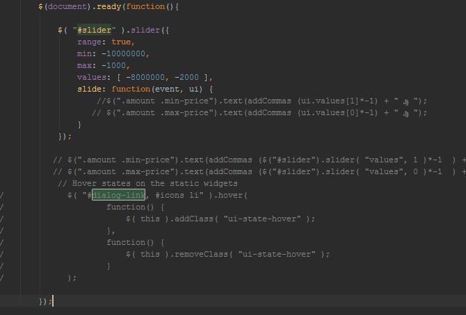 $(".amount .max-price").text(addCommas (ui.values[0]*-1) + " ریال ");