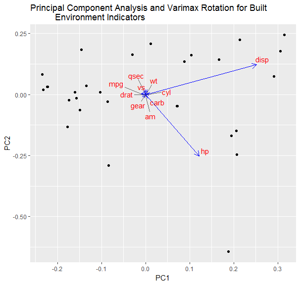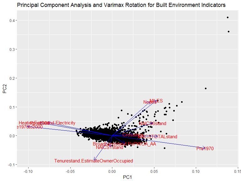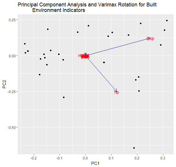 ggtitle(label = "Principal Component Analysis and Varimax Rotation for Built