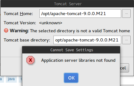 我遵循了本教程的所有步骤。(一个非常基本的)问题是当他选择2:35 configure -> /opt/tomcat时。如果我这样做,我会得到这样的错误: