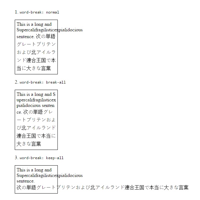 在break-all中,非CJK文本可以在任何地方被打破,就像normal中的CJK文本一样。