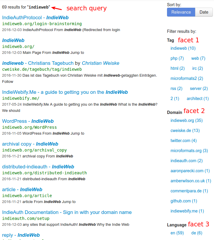 我的用例:我有一个网站列表,每个记录都有一个域和一个语言字段。在显示搜索结果时,我希望获得搜索结果所显示的所有域的列表,以及所有语言的列表,并按出现的次数排序,以便缩小搜索结果的范围。还应给出这些单面值的结果数。