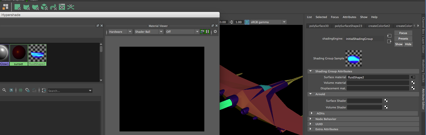 在我看来,超高速中的fluidShape2节点实际上不是一个着色器,所创建的多边形实际上被指定为lambert1。我不太确定,但考虑到我上周开始使用玛雅。