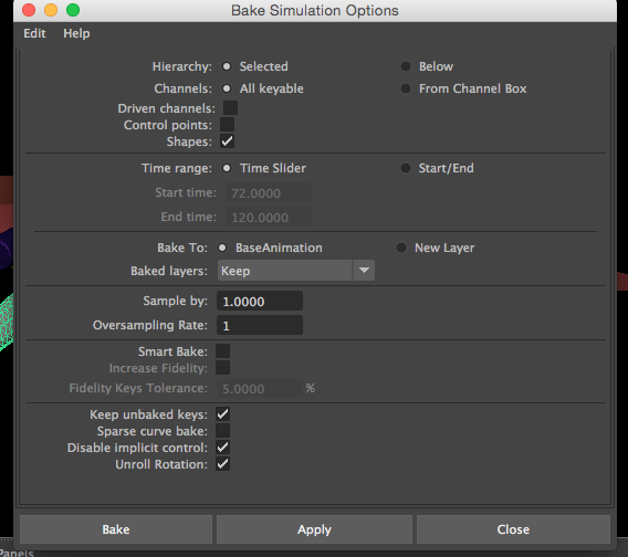 bakeResults -simulation true -t "1:100" -sampleBy 1 -disableImplicitControl true -preserveOutsideKeys true -sparseAnimCurveBake false -removeBakedAttributeFromLayer false -removeBakedAnimFromLayer false -bakeOnOverrideLayer false -minimizeRotation true -controlPoints false -shape true {"nurbsSphere1"} ;你不需要任何类型的曲线插值(线性或贝塞尔),只是烤键在每一帧。您可以通过FBX或ABC文件格式导出动画。还有一种方法可以将动画网格导出为OBJ序列:免费OBJ序列导入/输出。
