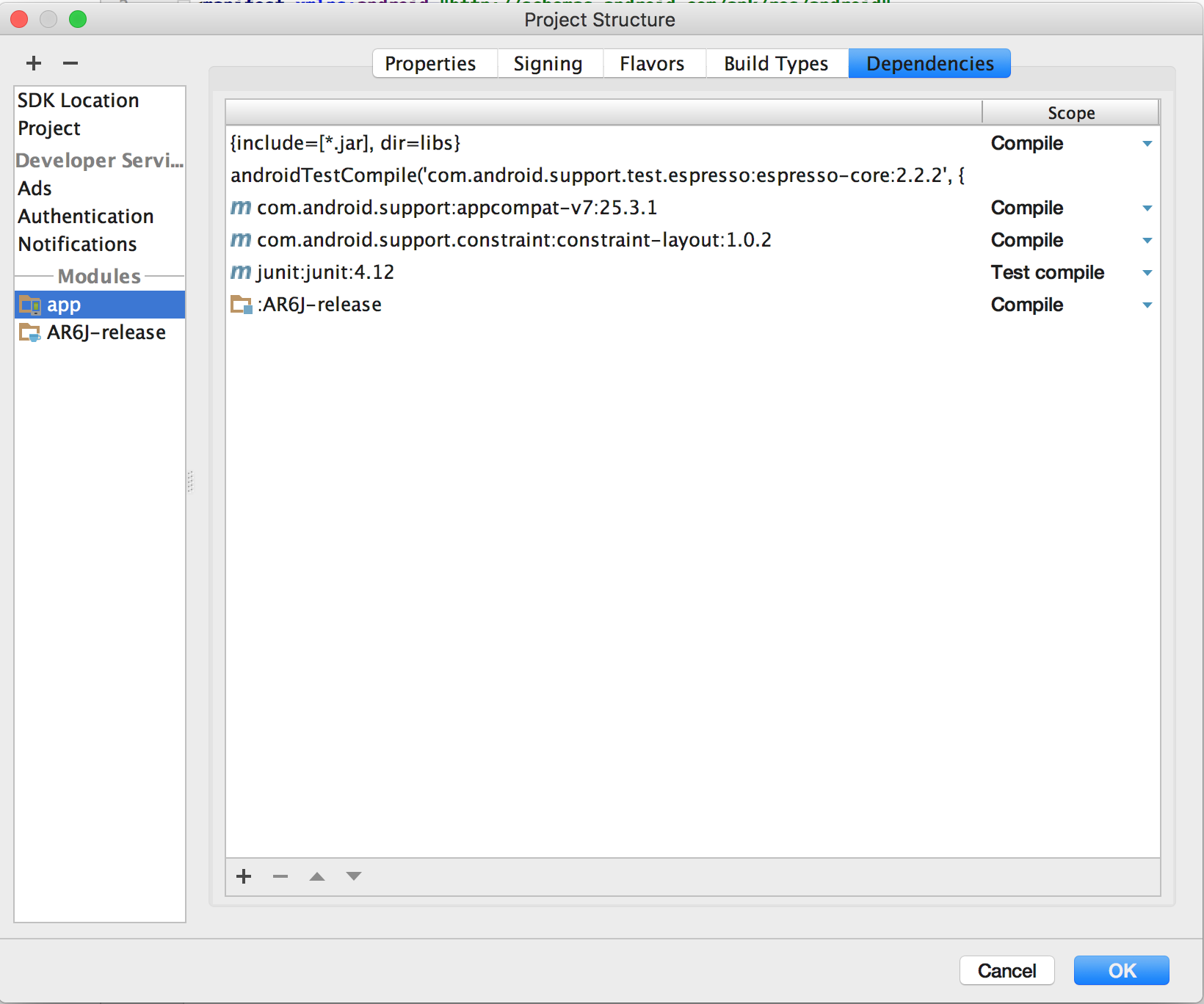 Dependencies选项卡+ > Module并选择AR6JRelation
