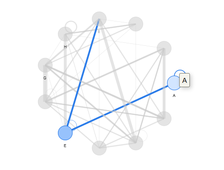 我试图可视化一个关系数据结构的“合资企业”(即公司与他人合作的产品)。例如,I公司可能参与了与j公司的合资企业A,而我公司I也参加了与j公司和k公司的合资企业B,因此,公司i,j,k都有某种共同成员关系({i,j},{i,j,k}),但公司{i,j}之间的协作强度比公司{i,k}作为公司i和j在更多的合资企业中的协作强度更强。