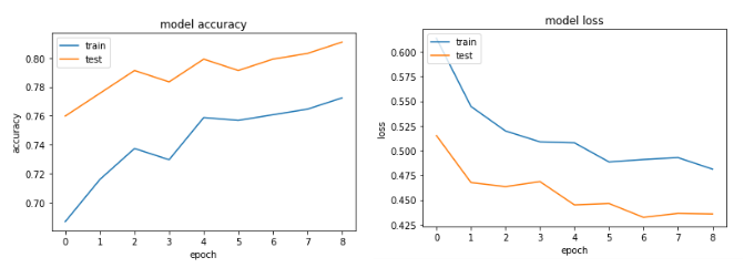 第一个实例给出的验证精度> 75%,第二个实例给出的精度< 65%,如果比较100以下的损失,第一个和第二个的损失小于0.5,则> 0.6。但是第二个案子怎么样了?