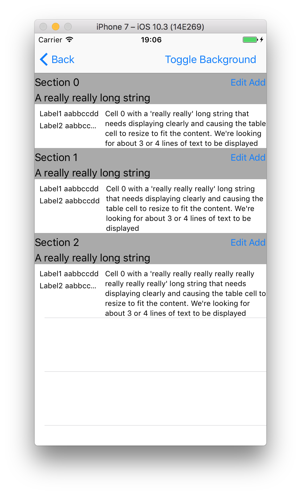 cell.rightLabel?.text = "Cell \(indexPath.row) with a 'really really really really really really really really' long string that needs displaying clearly and causing the table cell to resize to fit the content. We're looking for about 3 or 4 lines of text to be displayed"