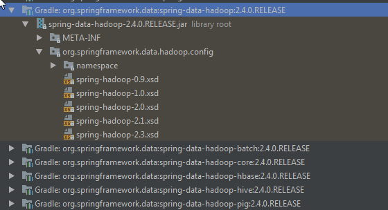 compile group: 'org.springframework.data', name: 'spring-data-hadoop-config', version: '2.4.0.RELEASE'https://stackoverflow.com/questions/44924491