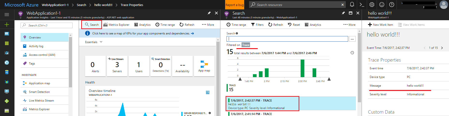 logger.Info("Hello world!!!");在这里,我创建了我的asp.net MVC应用程序,配置了应用程序洞察力并安装了相关的包,然后在Application_Start方法下从Global.asax.cs文件中添加了如下配置: