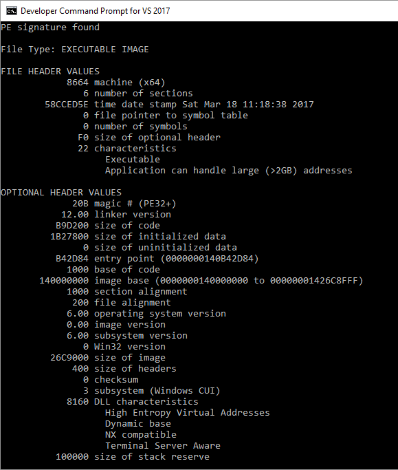 此外,在Windows 10 (x64)上,我如何确保已动态编译了exe?能从垃圾箱的输出中找出答案吗?下面是mysqld.exe的dumpbin输出(版本5.7):