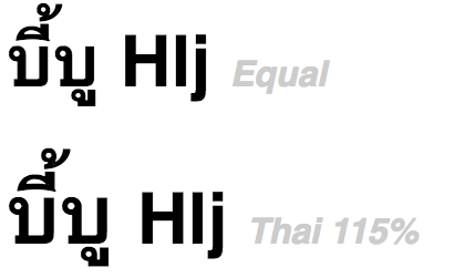 这是泰国和拉丁文的字体。当泰文和拉丁文有一个相等的font-size应用于他们时,泰语明显是“太小”(在字体较小的时候更明显)。将其增加15%,使之更接近于实际的泰语表述: