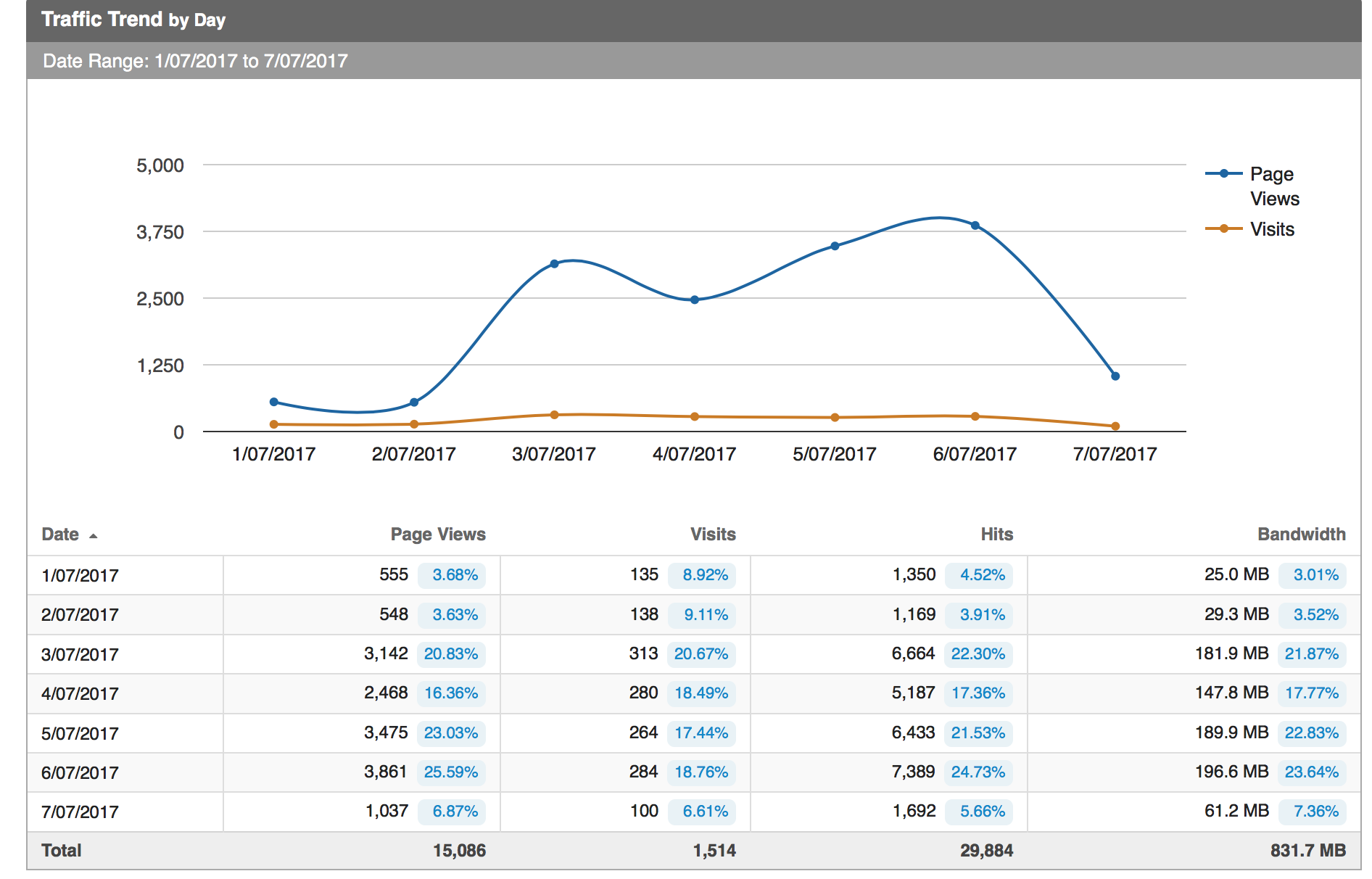 从主机提供商获得的统计数据(1周)(见下图)
