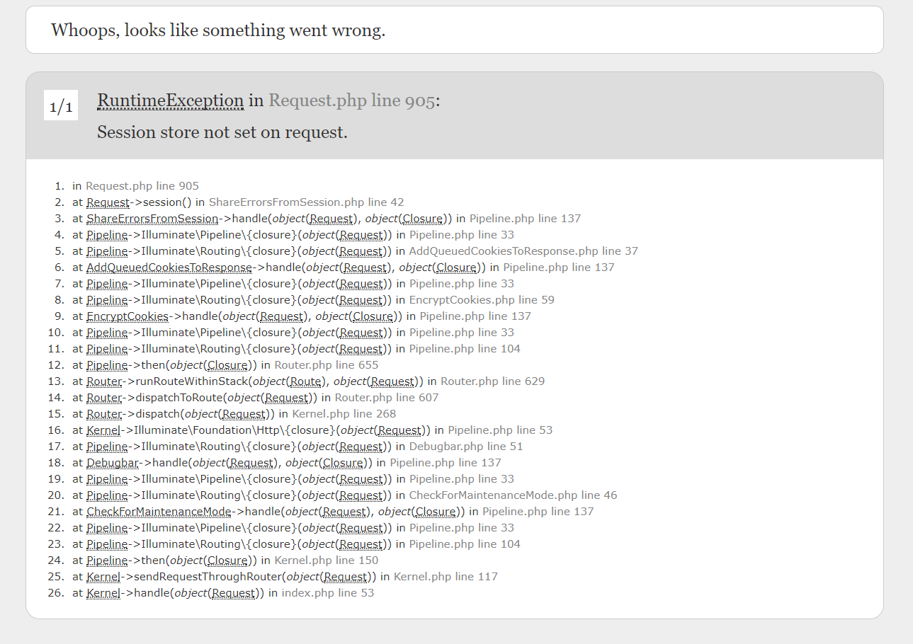 如果在web中间件中添加路由不起作用,那么尝试将其添加到$middleware到Kernel.php中