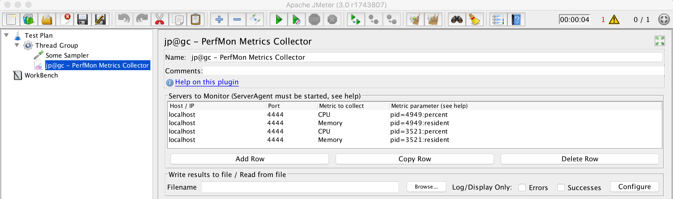 我试图使用Jmeter插件来监控cpu和服务器内存的使用情况。服务器托管在linux机器上,并运行apache和postgresql。