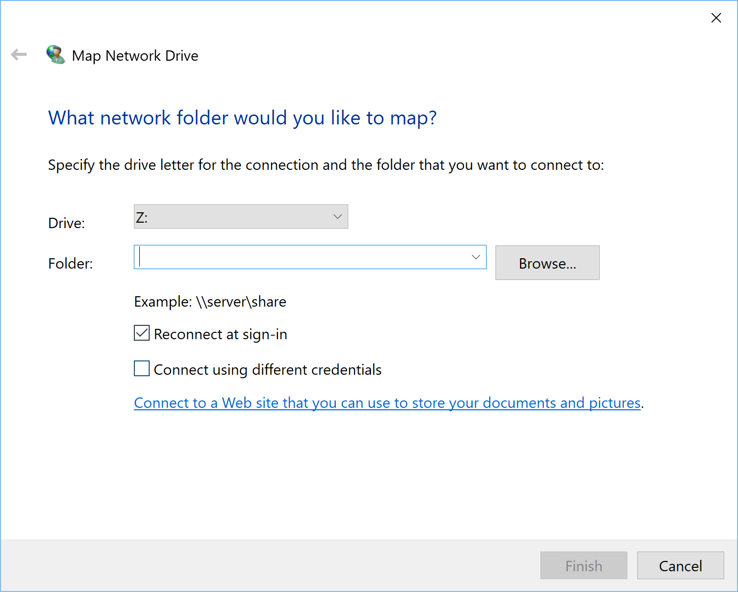 我不认为那是可能的。因为Windows的“地图网络驱动器”本身就是这样工作的。它需要网络定位,并映射到您的机器中的一个新驱动器。