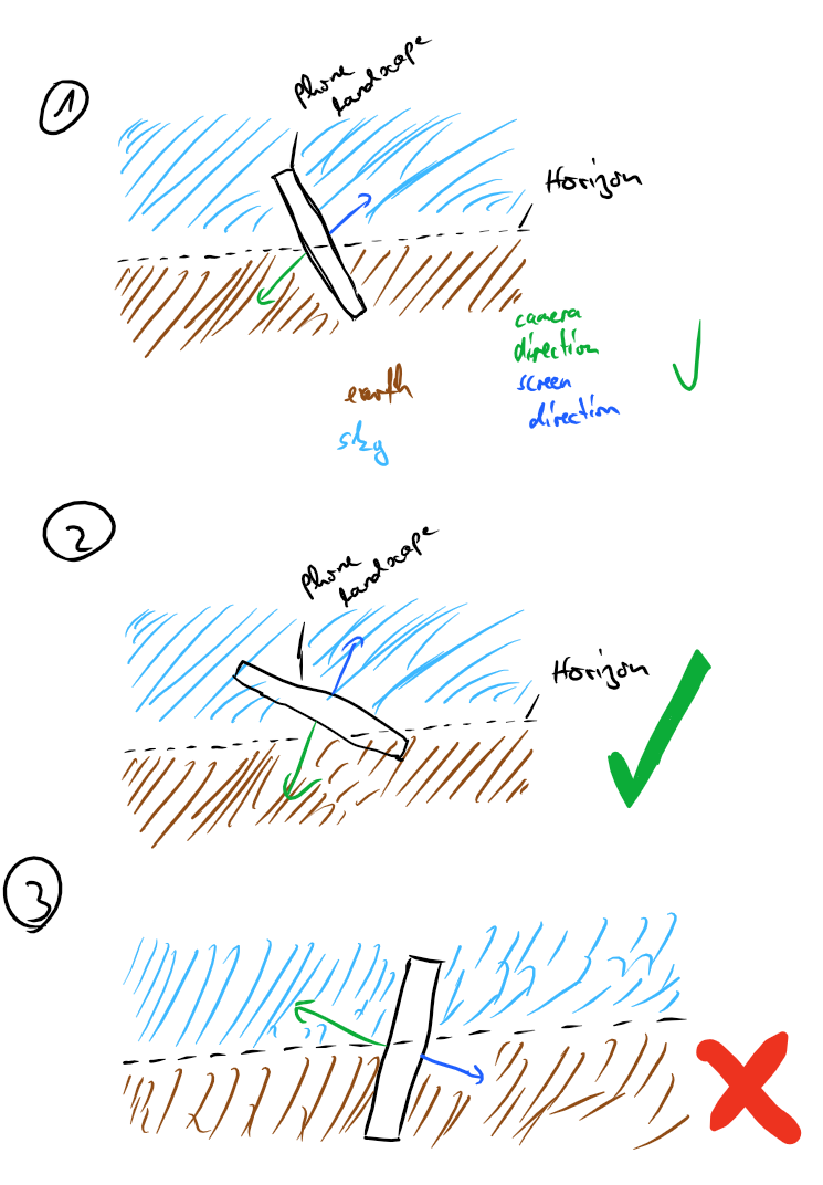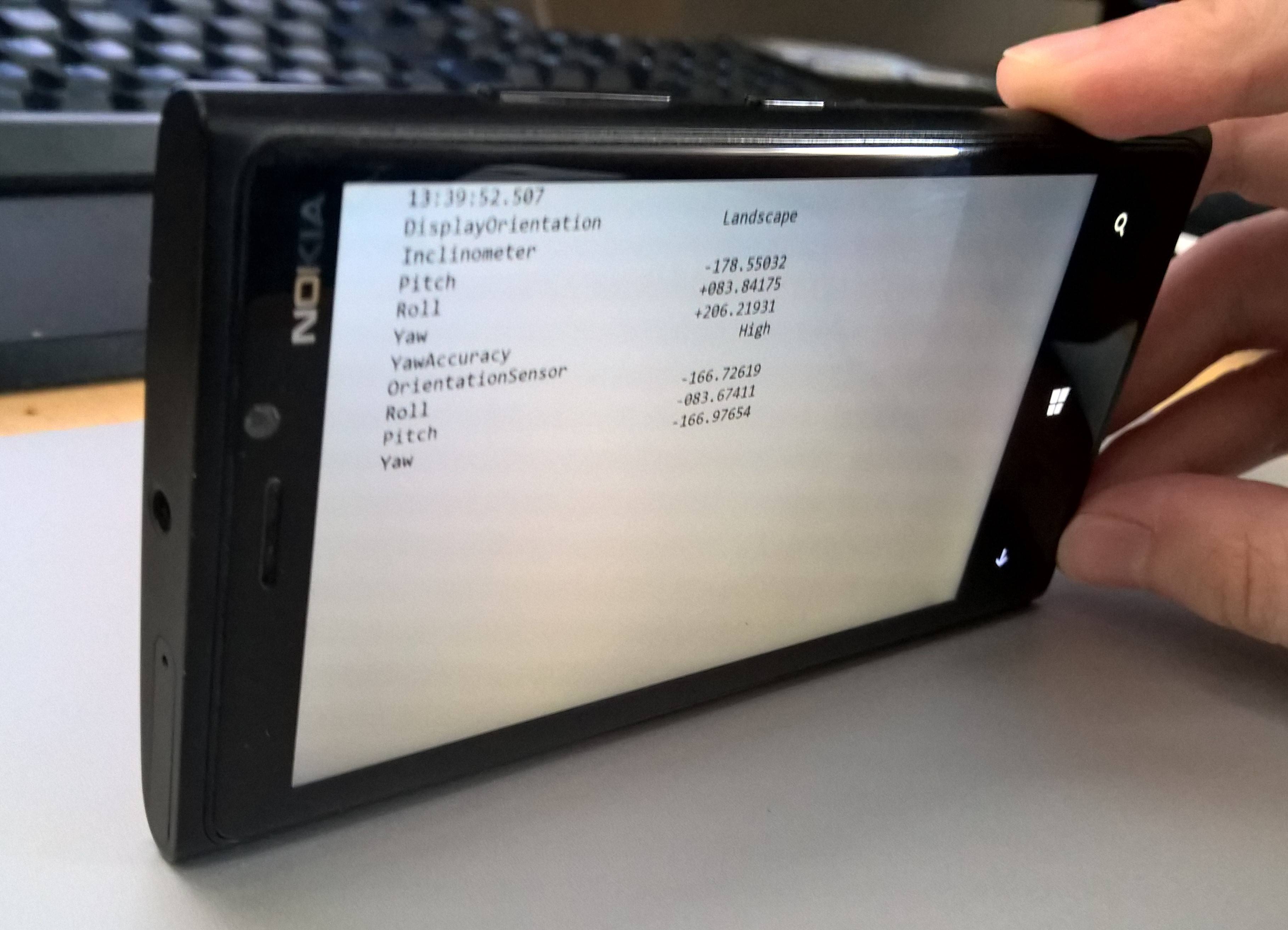 我正试图升级我的一个应用程序,使用Windows 10移动设备传感器作为个人电脑的虚拟现实设备(比如)。当设备从指向地平线以下变为地平线上方时,我在传感器读出方面遇到了问题(同时发生在景观和人像上,但是在这种情况下,只有景观才是重要的)。小品: