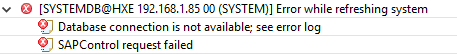 我在一个VMware工作站环境中安装了HANA,还用HANA管理员插件安装了Eclipse4.6。VMWare和Eclipse都运行在Windows10上。我可以在没有问题的情况下启动HANA,但是当我尝试从Eclipse连接时,连接就失败了。