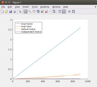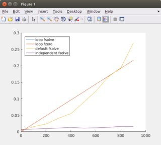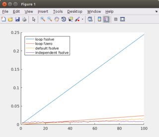 n系统更快。n,循环可能比较慢,因为一个循环在MATLAB中有很高的开销,并且可能有一些恒定的启动时间。fzero比fsolve更快,因为它是专为一个非线性方程而做的。问题:,对于一个n非线性独立方程组,最快的方法是什么?还有其他方法吗?应该使用哪些选项来加速这一进程?