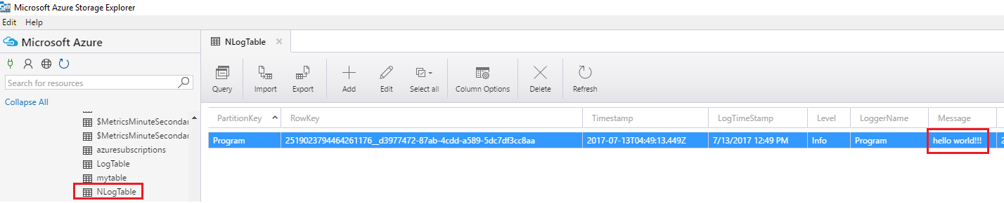 FYI -我使用的是最新版本Nlog最新版本4.4.11 &我添加了Nlog.extensions.azuretablestorage的扩展(NugetVersion1.1.4)