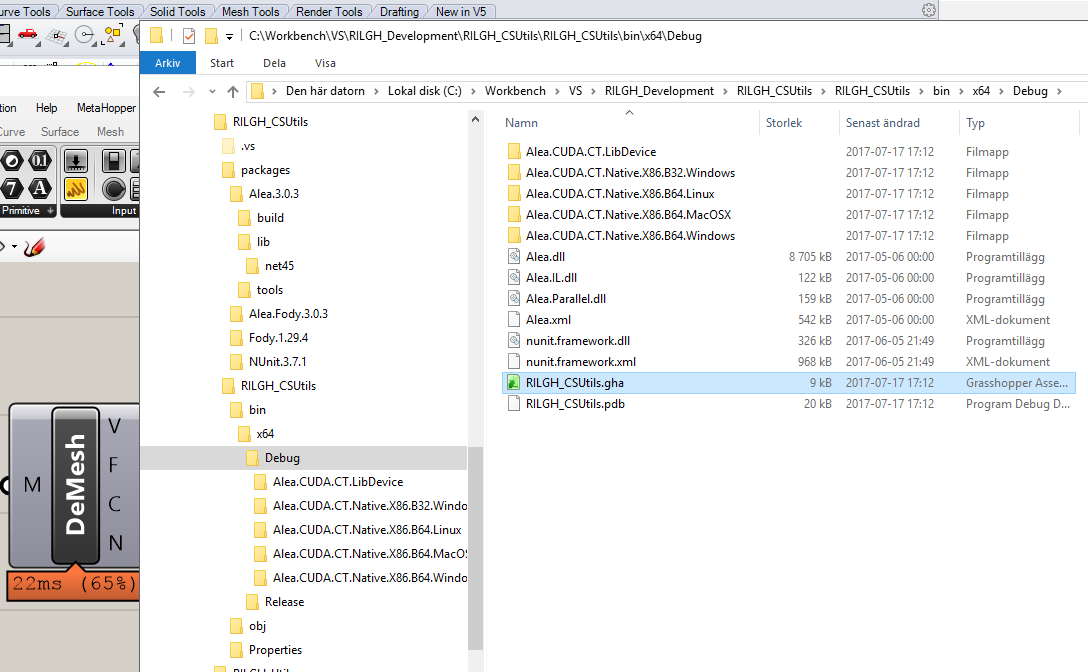 运行这一称为"GrassHopper定义“(本质上是.dll的.gha文件)的代码位于VS项目中的以下文件夹结构中,其中还显示了Alea包结构。