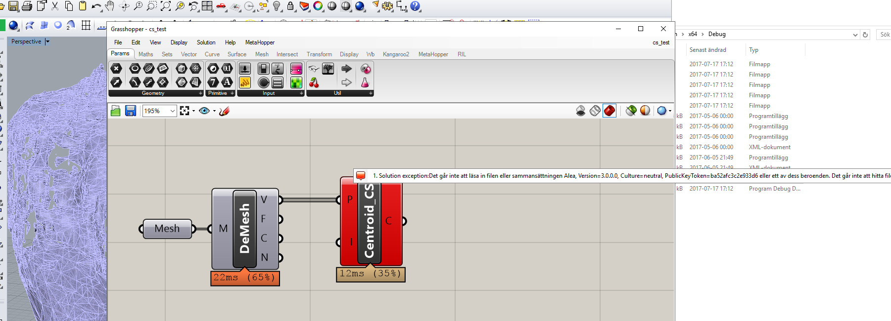 我使用Nuget为VS2017安装了Alea包,我的项目代码为Rhino3d编译并创建了所需的GrassHopper组件。此组件在RT中也会正确显示,但在输入包含Alea调用的“解决程序”方法时,会出现以下错误消息。
