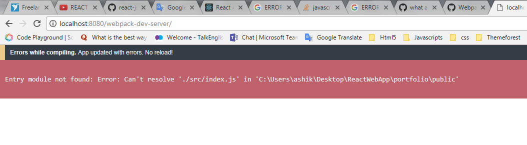 我安装了一个react启动应用程序,添加了Webpack,但上面写着Can't resolve './src/index.js'。