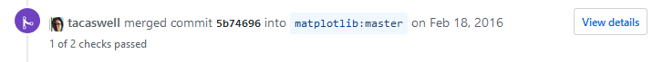 因此,在这里,tacaswell将其与合并提交5b74696合并到5b74696中。单击提交哈希,您将看到提交详细信息页,它将向您显示以下信息: