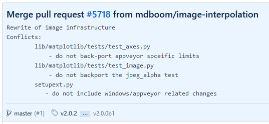具体案例:查找包含matplotlib的标记修订版,其中包含此合并。