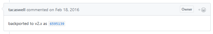 因此,他决定将这个拉请求的内容移植到2.x开发行中,使用提交6595139。单击该哈希将再次引导您进入提交详细信息页,它如下所示: