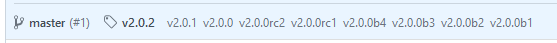 同样,在底部我们看到这个提交是其一部分的分支和标记。在本例中,它再次包含在master分支中,但它也包含在一些分支上,粗体的v2.0.2是最近的分支,v2.0.0b1是最早的分支。如果单击省略号,将得到此提交所使用的所有标记的列表: