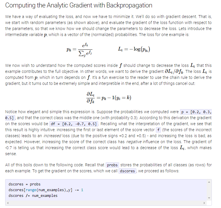 我有一个特别的问题,关于在CS231n中使用的软最大值的梯度。在推导出计算每个类的梯度的softmax函数后,作者将梯度除以num_examples,即使梯度不被任何地方求和。这背后的逻辑是什么。为什么我们不能直接使用softmax梯度呢?
