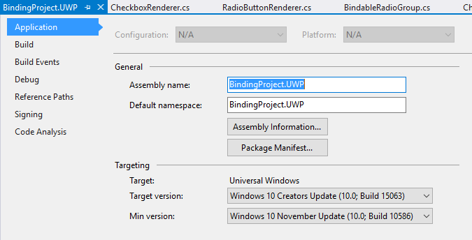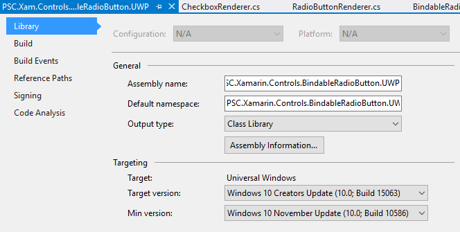 我检查了UWP主项目和实现项目的配置,它们都是相同的设置。