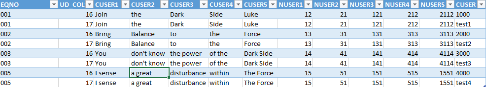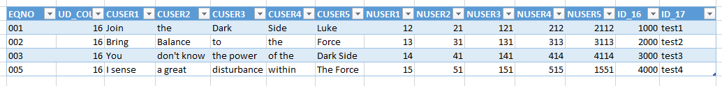除了UD_COLS_ID(16,17,16,17.)和CUSER(1000,test2 1,2000,test2.)