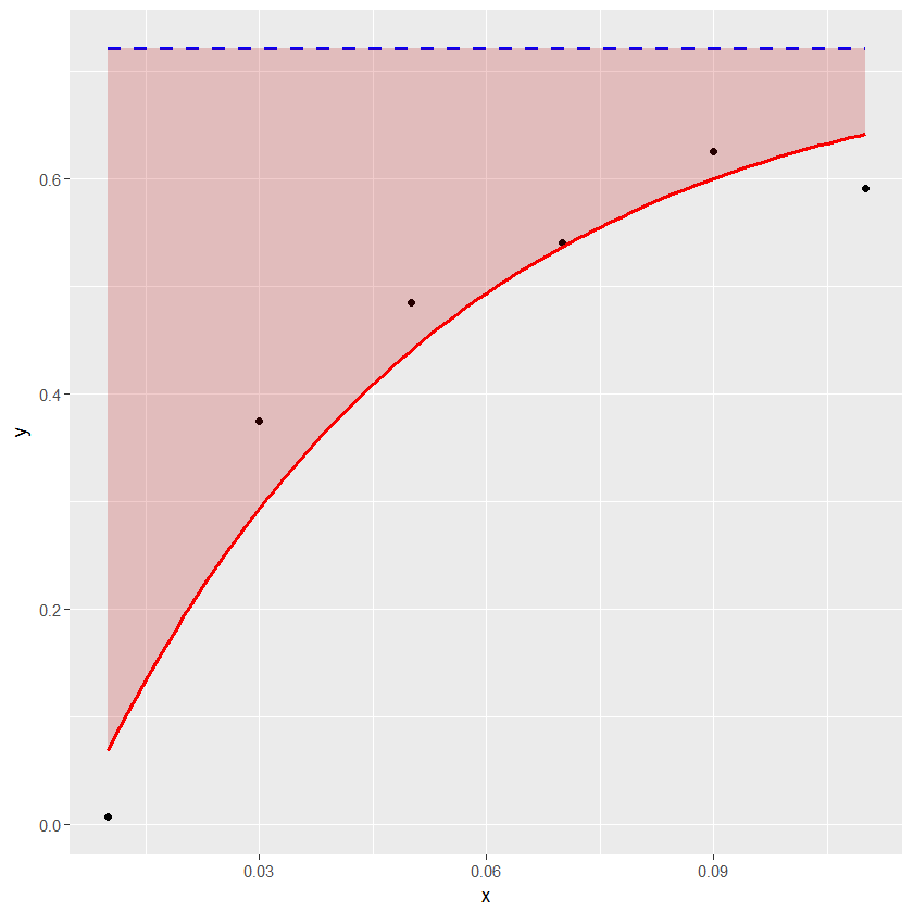 0.7208959 - 0.8049132 * exp(-21.0274 * x)}我将它们与ggplot2一起使用: