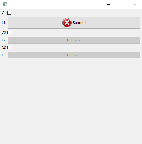 当选择和取消选中复选框并最大化窗口时,它将导致设置第一个按钮的图标,即使它是空的。此外,按钮上的文本布局可能会导致错误。