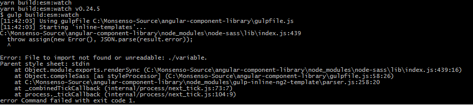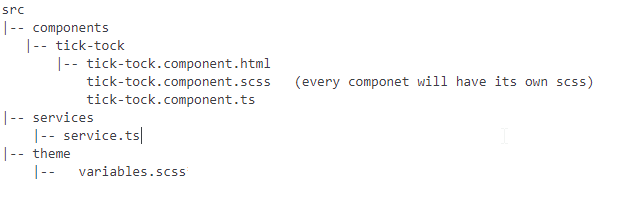 此variables.scss文件将有主样式表、mexins等。我目前面临的挑战是,当我试图将此variables.scss文件导入tick-tock.component.scss时。