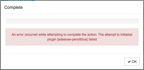 我正在使用adsense-pencilblue插件,当它转到活动站点时,它在我配置它时显示了一个错误消息。屏幕截图附在错误信息的后面。