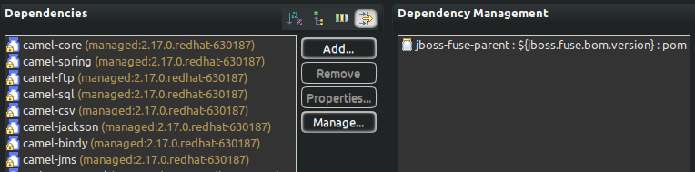 您需要导入Fuse jboss-fuse-父程序,比如(编辑-正如Claus所说的-添加存储库):