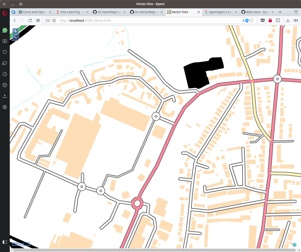 默认情况下,OpenLayers将点(即环形交叉路口)呈现为矢量,而预渲染直线(即道路)到图像。这可以使用ol.layer.VectorTile的renderMode选项来控制,该选项默认为'hybrid'。