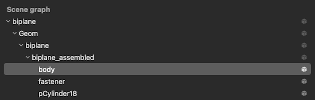 body.geometry.materials[0].roughness.contents = @0.0; 结果biplane.usdz模型
