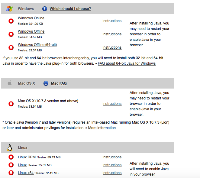 这就是为什么在下载JRE时看到所有这些不同的下载链接的原因: