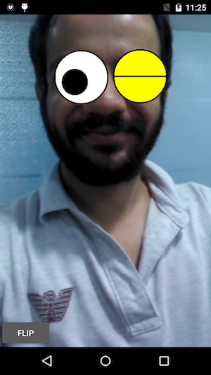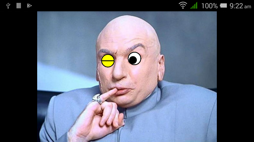 }在上面的片段中,我对眼睛半径进行了硬编码,以显示概念的证明。您可能希望进行一些更灵活的缩放,使用一定百分比的face.getWidth()来确定适当的值。但这是图像处理所能做的:
