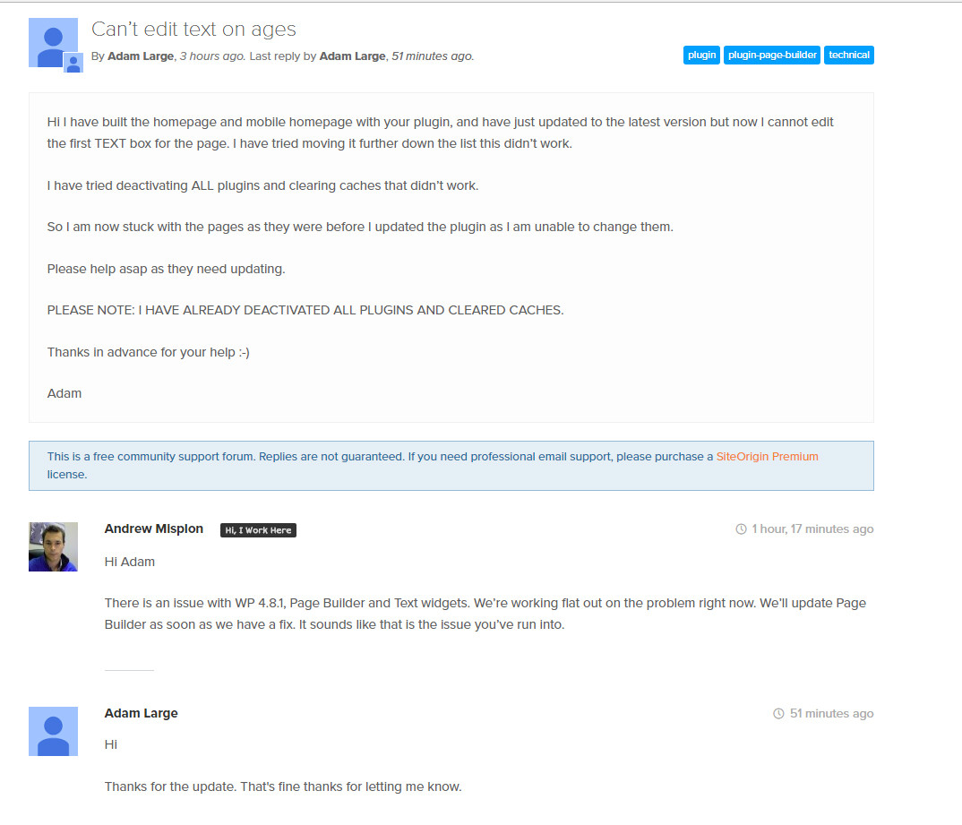 我认为SiteOrigin的插件页面生成器有一个问题,因为Wordpress 4.8.1。等待插件更新以及'I‘不被认为是一个内部或外部命令,可操作的程序或批处理文件。
