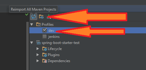 2)使用IJ的一个巧妙的技巧,它可以让您在发布产品之前更容易地取消对provided的评论,这就是保持现在的依赖性,并添加一个可以从IJ激活的maven dev配置文件。这样,默认情况下它将是provided,并且可以安全地打包到war中,并且只有在开发和手动激活概要文件时才会包含它。添加配置文件后,重新导入您的maven项目,以便您可以选择配置文件: