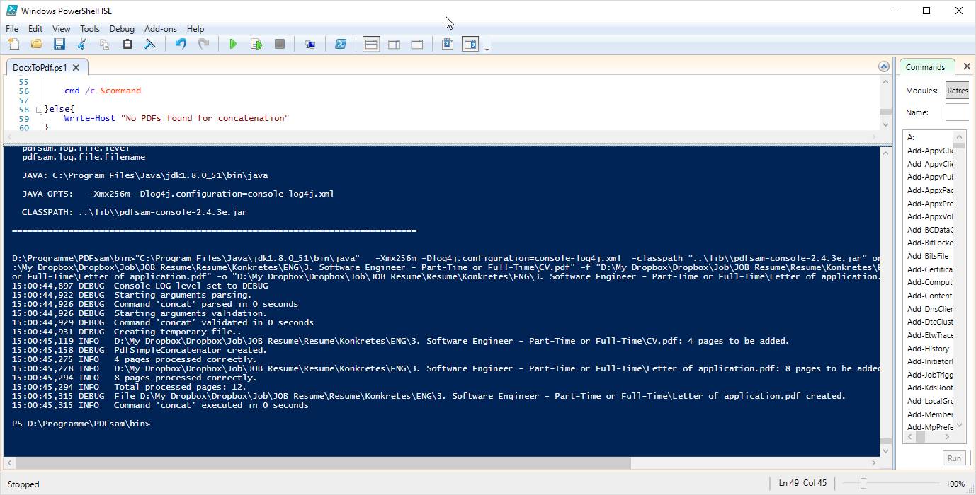 $command += " -o `"$FilePath\Letter of application.pdf`" -overwrite concat"