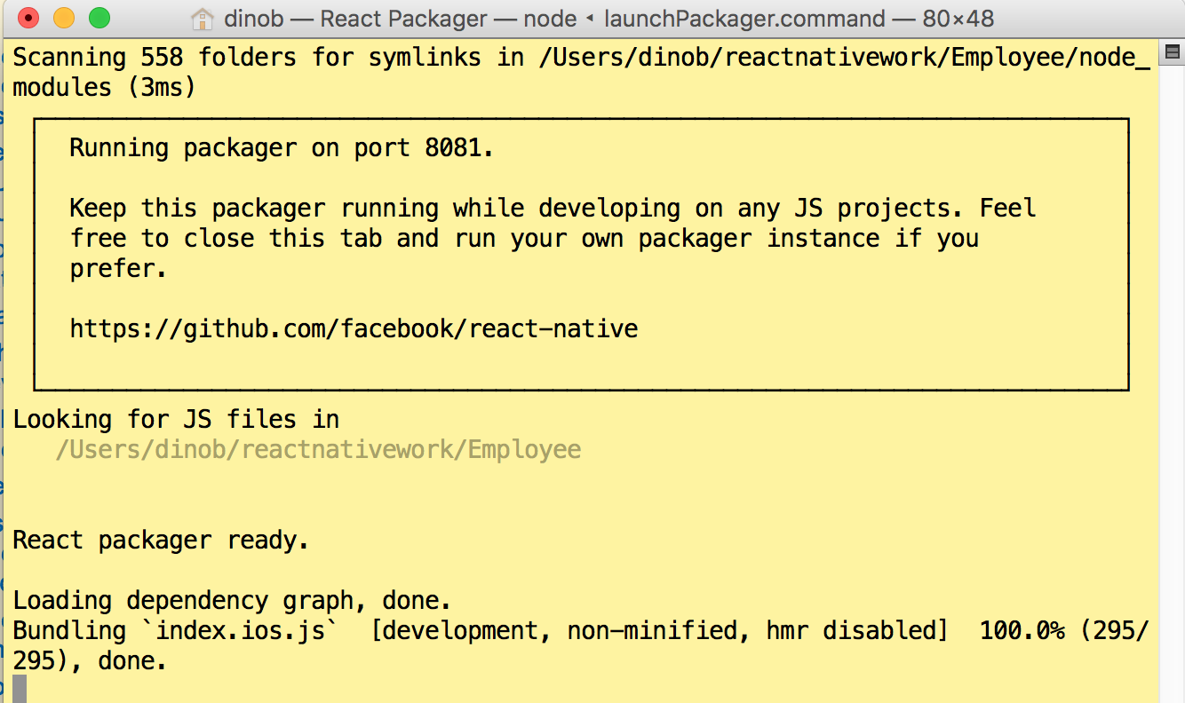 几天前,我开始学习react,这是我尝试的第一个例子(包括IOS和Android)。所以,我对这个主题非常陌生,错误说我需要正确地打包包,并且我需要运行packager服务器。如上所示,当我从XCode启动IOS代码时,服务器就运行了,但是如何在android中打包并运行呢?
